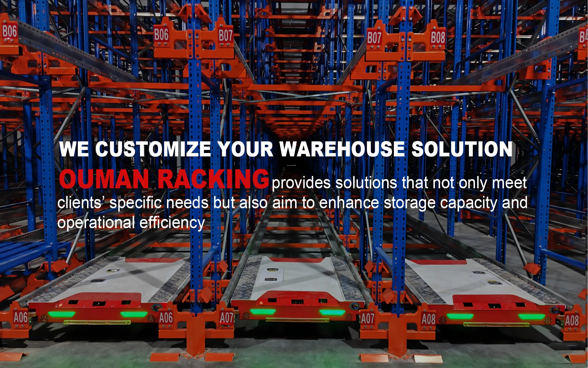 Z biegiem lat firma Omracking stała się wiodącym producentem i dostawcą- wysokiej jakości przemysłowych rozwiązań magazynowych, działającym na rynku obejmującym ponad 60 krajów. Nasi klienci pochodzą z Azji Południowo-Wschodniej, Australii, rynku Bliskiego Wschodu, Europy, Ameryki Południowej itp., Eksportując co najmniej 600 kontenerów rocznie, z ponad 3000 rozwiązań.